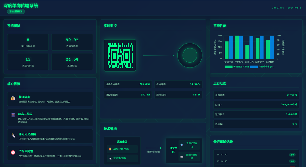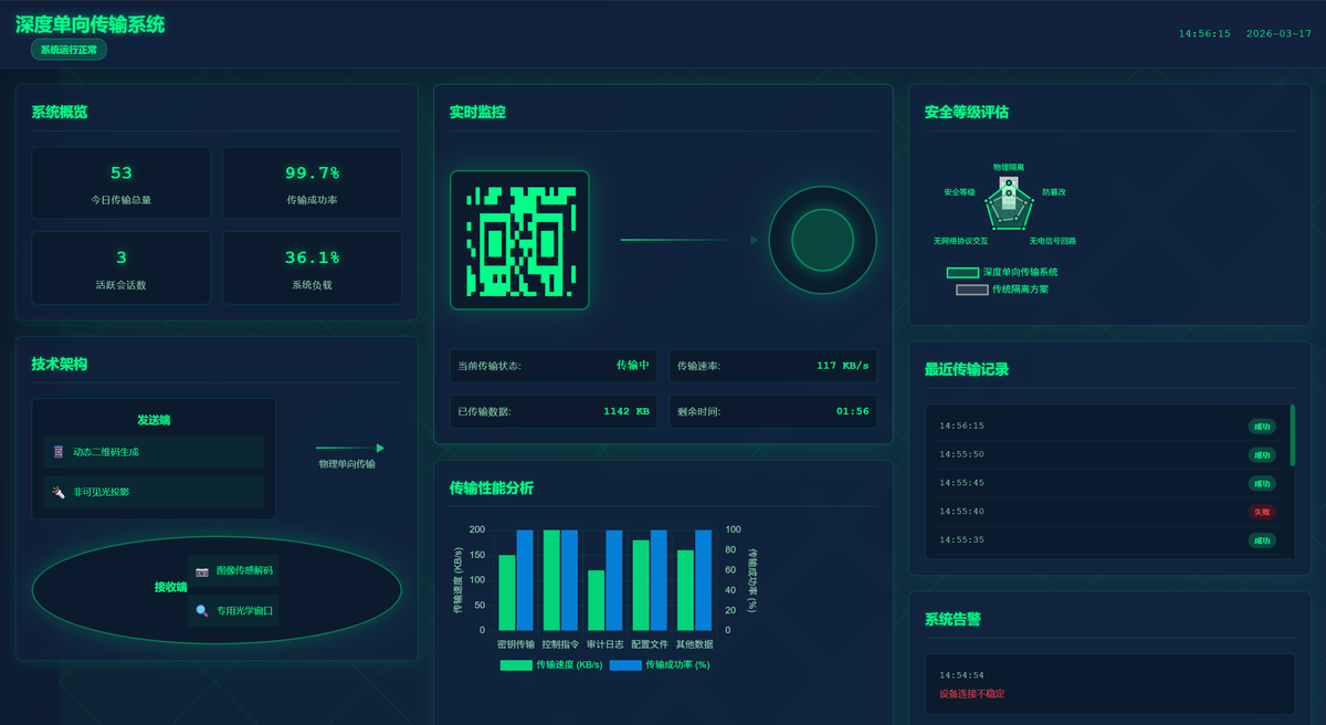整个传输过程在物理层实现严格单向性,杜绝任何形式的数据回流或远程控制可能;